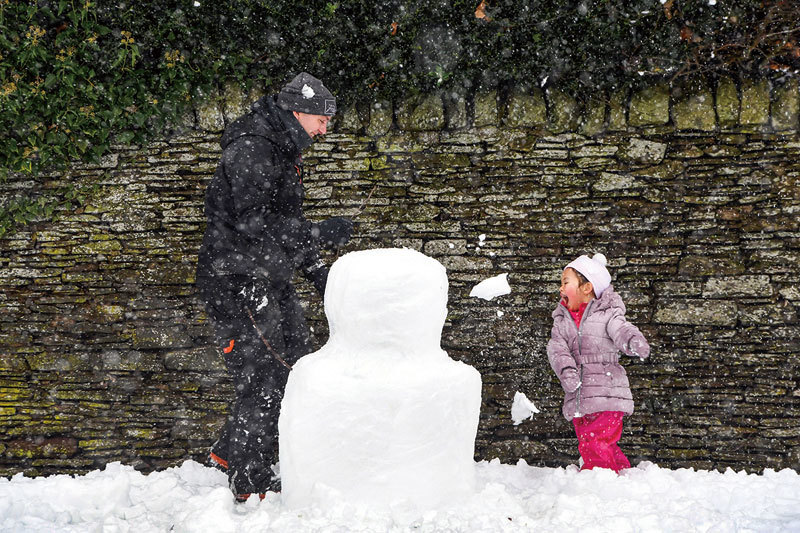 2021年4月移民至曼城的Janis說,全家已適應英國生活,不過還得習慣生活上的細節,「比如夏令時間,食物的種類,付款和購物方式,現在還快要下雪呢。」圖為2021年1月14日,蘇格蘭部分地區降雪,一個孩子在雪地裡玩耍。(Andy Buchanan / AFP)