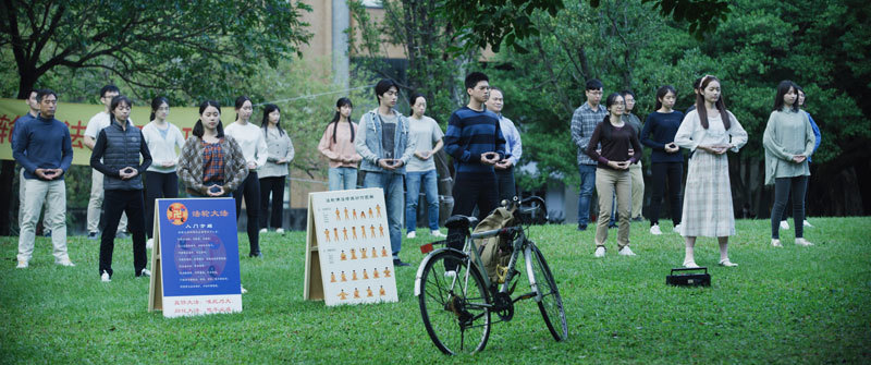 兩對年輕學子的自行車在一個校園煉功點停了下來,鏡頭裡出現了悠揚的煉功音樂和安靜祥和的煉功場面——法輪功,這是歷史悠久的中國傳統文化的一部分,屬於佛家修煉功法,以「真、善、忍」為人生的準則。在1992年從中國長春傳出後,在沒有任何官方宣傳推廣的情況下,法輪功就吸引了成千上萬的學員,到1998年時,根據中國官方的統計,修煉法輪功的人數已有7000萬至1億人,超過了當時的中共黨員人數。尤其是在中國高校裡,修煉法輪功的教授、學生比比皆是,影片中的兩對青年學子正是清華大學的法輪功修煉者。