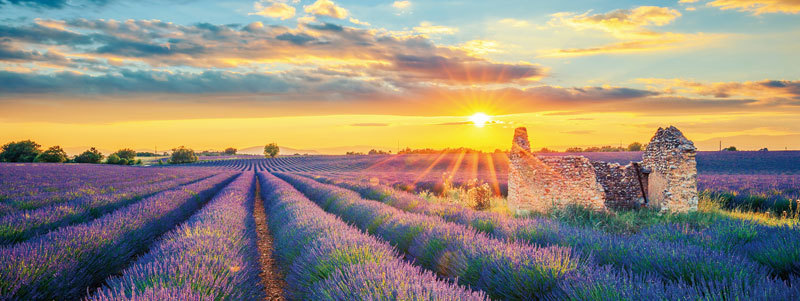金輝雲影下的法國薰衣草花田。(shutterstock)