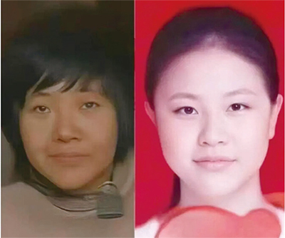 1996年失蹤,當時正在四川南充讀小學六年級的李瑩,上學之後就沒再回來。人們將李瑩的照片和視頻中的鐵鍊女照片對比,發現兩人驚人相似。(微博截圖)