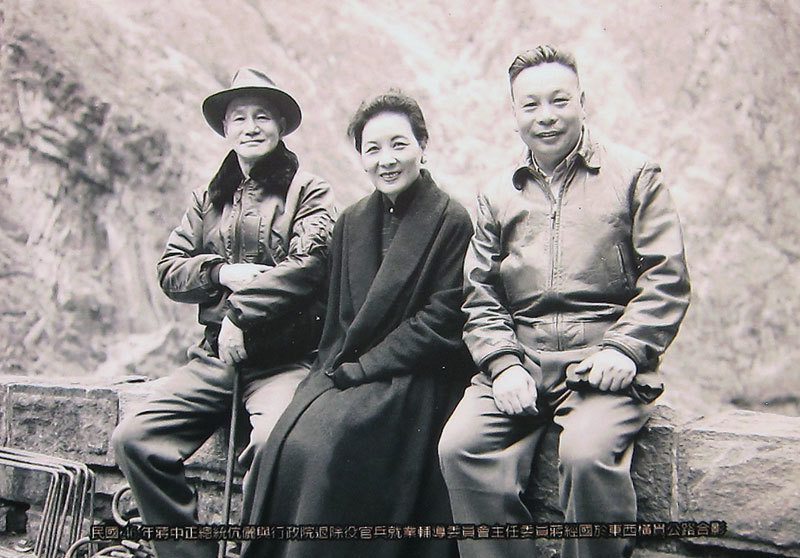 蔣經國是中華民國第六、七任總統,他的父親蔣中正是第一至五任總統。圖為先總統蔣中正伉儷與退除役官兵就業輔導委員會主任委員蔣經國(右)於東西橫貫公路合影。(鍾元/大紀元)