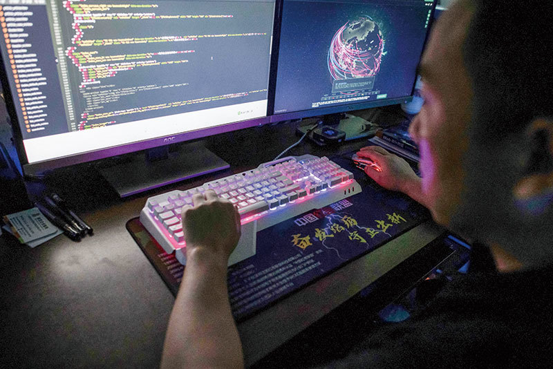 中國大陸黑客針對歐洲國家發起許多網路攻擊,歐洲對中共具體的進攻能力知之甚少。圖為2020年8月4日,廣東省東莞市一位網路黑客組織成員。(Nicolas Asfouri / AFP)