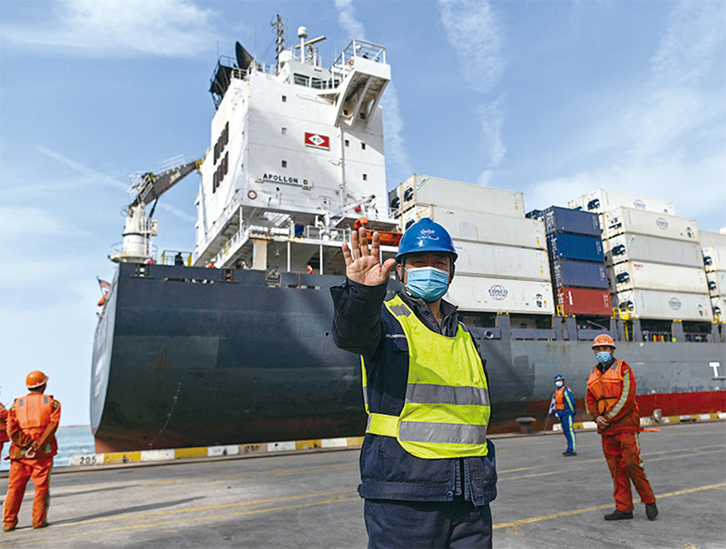 臺灣國立中央大學經濟學系主任邱俊榮表示,美國對中共的貿易政策本來就比較強硬,最近正在調整,預期會更加強硬。圖為2021年3月24日,江蘇省連雲港港集裝箱碼頭。(Hector Retamal / AFP)