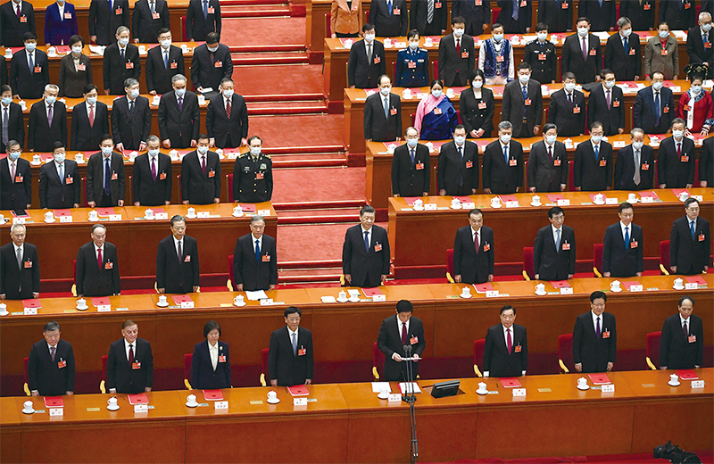 專家們表示,在西方罕見的聯合反制俄國侵略的行動中,最能讓中共高官們感受到切膚之痛的,是鎖定海外資產的個人制裁。圖為2022年3月11日,中共領導人和代表在北京人民大會堂出席全國人民代表大會閉幕會議。(Leo Ramirez / AFP)