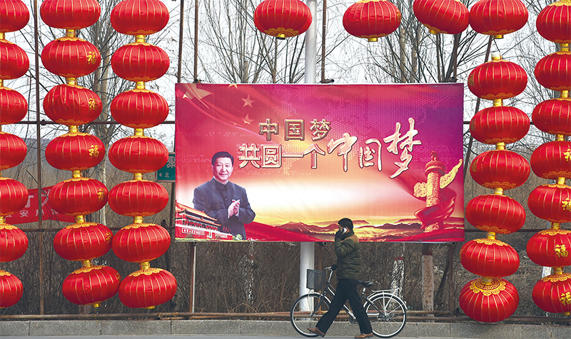 習近平與普京最「知心」、最相似的地方,是他們都有各自「民族復興」的美夢。2015年2月24日,河北省保定市一處宣傳習近平中國夢的裝置。(Greg Baker / AFP)