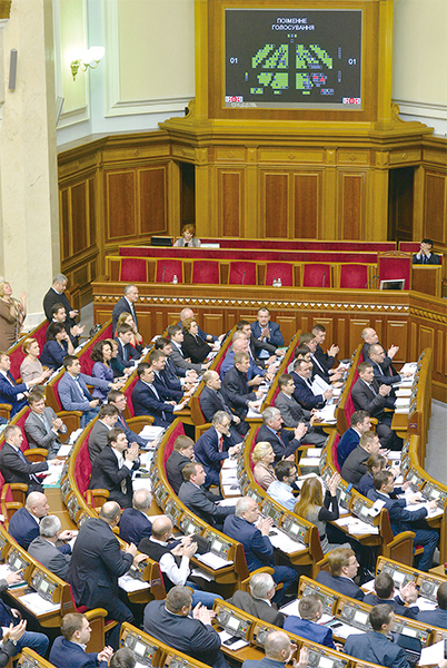 俄羅斯對克里米亞的占領,促使烏克蘭加入北約尋求安全保障的呼聲高漲。圖為2014年12月23日,烏克蘭議會表決通過了放棄不結盟地位的法案。(Genya Savilov / AFP)