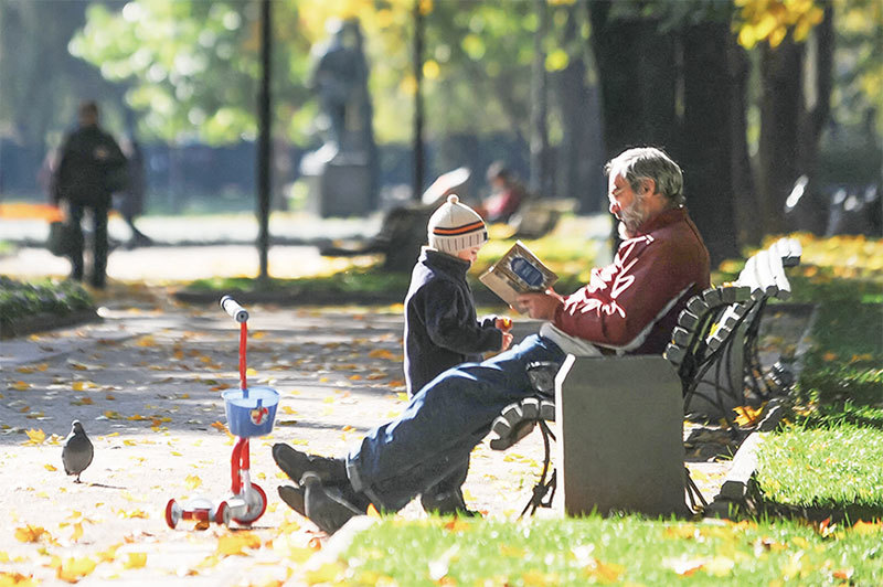 外出等待的間隙,可以讀書給孩子們聽。(Dmitry Kostyukov / AFP)