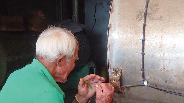 詹老先生聚精會神地製茶。