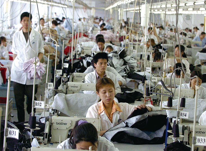 六四之後,中共以龐大的中國市場來誘惑西方政府和企業放棄對中國人權和民主自由的關注。圖為2005年,一家位於寧波的時裝加工廠。(STR / AFP)