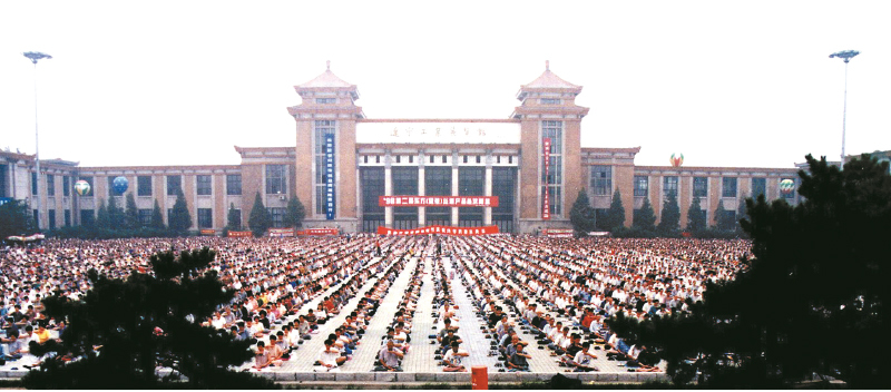迫害法輪功的政策一開始就在中共內部存在巨大分歧,1998年中共人大前委員長喬石曾經出了一份最權威的調查報告,認為法輪功與國於民有百利而無一害。圖為法輪功學員1998年瀋陽萬人集體煉功。(明慧網)