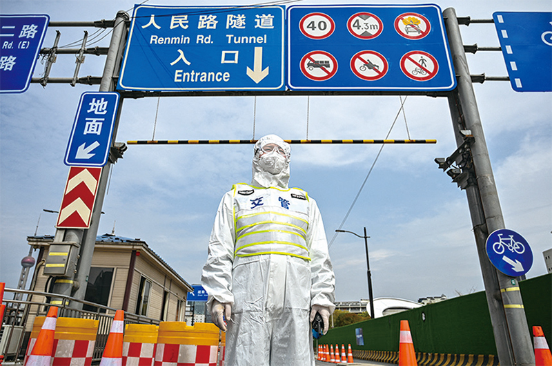 上海封城清零模式的延續,以及這種極端模式在全國的推行,正在引爆全社會的動盪,一場「文革2.0」或者是「內亂2.0」正在中國上演。圖為2022年3月28日,上海交警控制進入上海浦東區方向的隧道。(Hector Retamal / AFP)