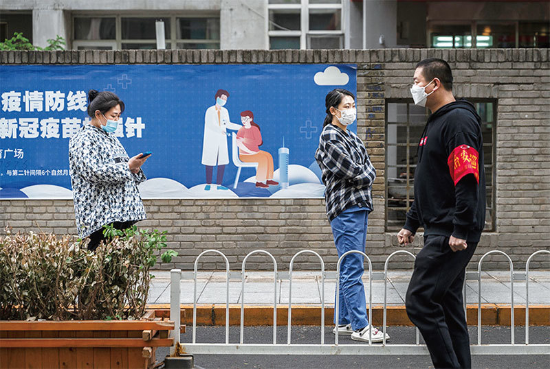 中國高校文憑含金量降低,今年北京朝陽區城管等「基層職位」的208人,名校生的比例高達95%以上。圖為2022年4月27日,北京朝陽區一個臨時核酸檢測點。(Kevin Frayer/Getty Images)