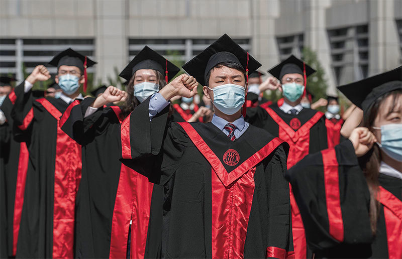 伴隨中共院系調整最大、最具毀滅性的後果,就是中國高校徹底喪失自主權,淪為共產黨統治和灌輸洗腦的工具。圖為2020年6月30日人民大學畢業生宣誓。(Kevin Frayer/Getty Images)