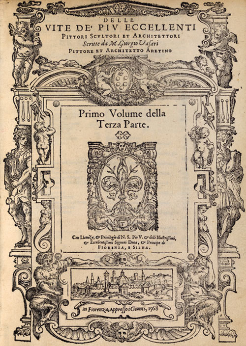 《藝苑名人傳》,喬爾喬.瓦薩里1568年著作。哈里斯.布里斯本.迪克基金會,1929年;典藏於大都會藝術博物館。(公有領域)