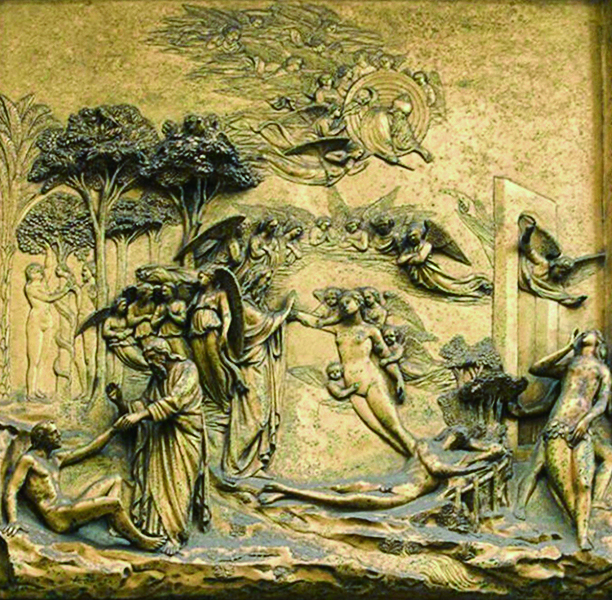 吉貝爾蒂〈天堂之門〉上的一塊面板,描繪著亞當和夏娃。(Thermos/CC BY-SA 2.5)