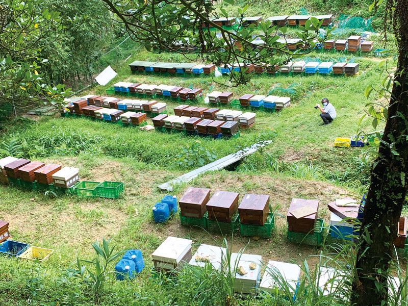 陳易達,林下養蜂。