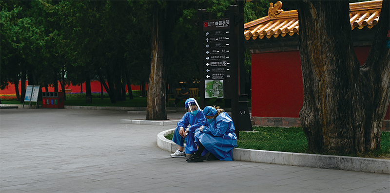 習近平搞清零,為了突顯社會主義的優越性,也是自己個人權威的體現。圖為2022年5月31日,北京拭子檢測點附近的公園。(Wang Zhao / AFP)