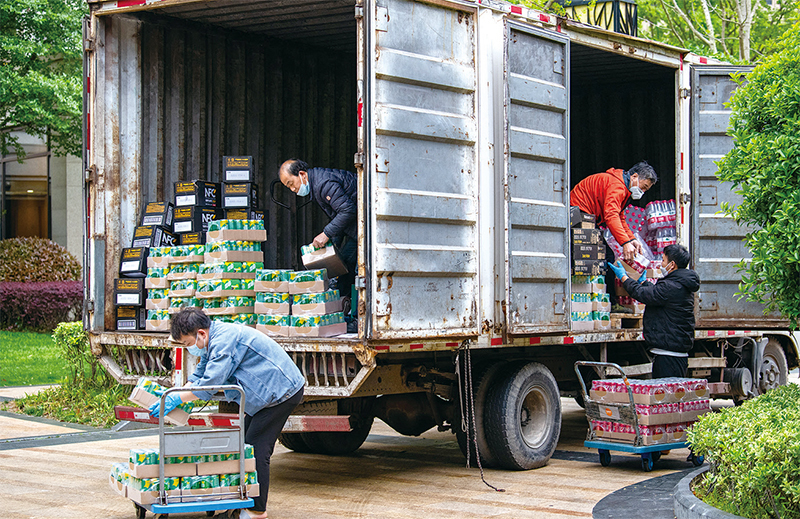 作家慕容雪村說,平常上海從事食物供應的有幾百萬人,封城後只靠著幾十萬大白或社區工作人員來分發食物,一定會有人挨餓或餓死的。(Liu Jun / AFP)