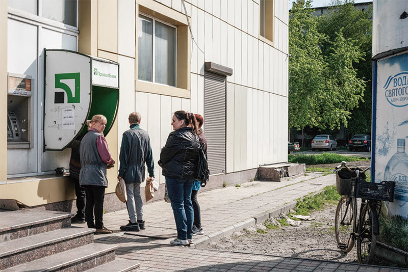 波蘭和烏克蘭達成協議,允許波蘭公民在烏克蘭的政府機構、銀行和國有企業擔任高級官員。圖為2022 年5 月4 日,烏克蘭東部多布羅皮利亞,人們在一家銀行的ATM 機前排隊取錢。(Yasuyoshi Chiba / AFP)