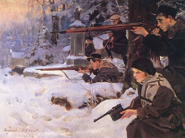波蘭畫家沃伊切赫.科薩克(Wojciech Kossak)描繪波烏戰爭場景的油畫,1926年。(公有領域)