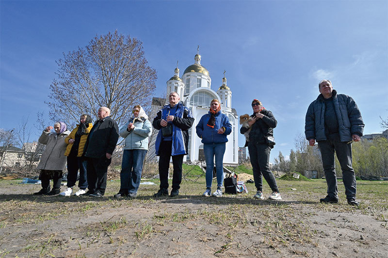 最近羅馬教宗發出警告說第三次世界大戰已經開始!圖為2022年4月24日,民眾聚集在烏克蘭城鎮布查的聖安德魯教堂前的萬人坑前哀悼。(Sergei Supinsky / AFP)