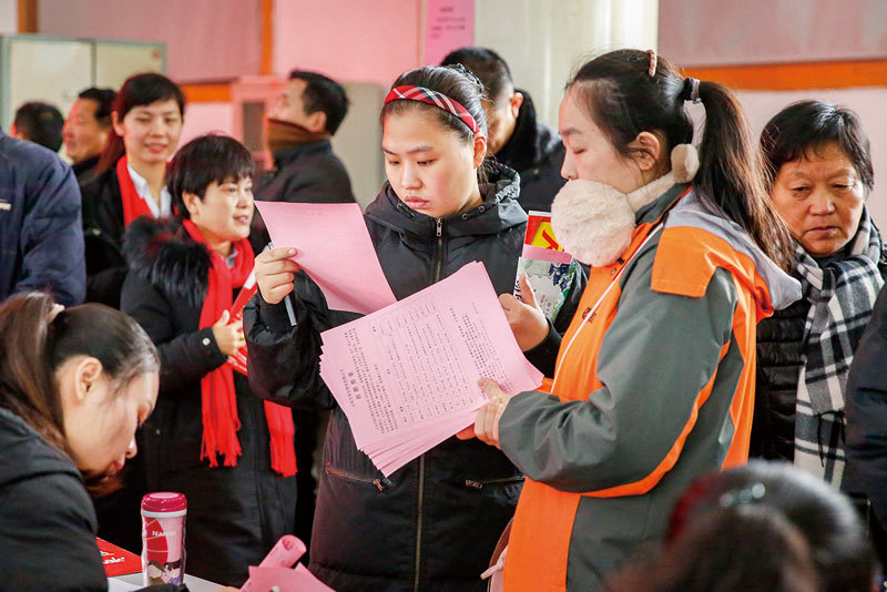 伴隨著中國就業市場的持續低迷,越來越多的大學畢業生選擇考研,或參加競爭日益激烈的公務員考試。圖為2019年2月12日,山東省滕州市舉行的一場招聘會。(STR / AFP)