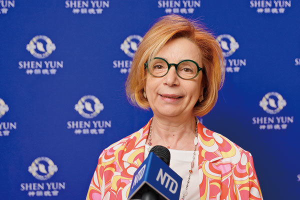 2022年6月11日晚,在意大利米蘭阿爾欽博第劇院,美學培訓師Mariagrazia Russo觀看了神韻紐約藝術團在當地的第九場演出。(新唐人電視台)