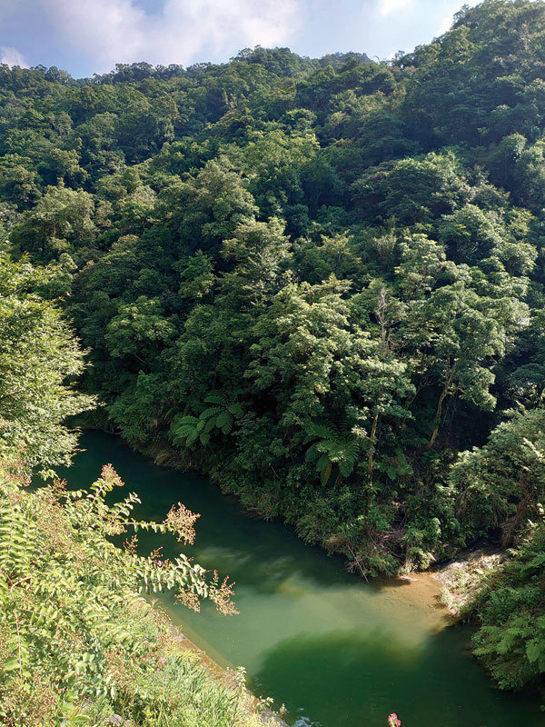 從吳金池臨窗的咖啡座位望下去是竿蓁林溪,流往離這不遠處的嶺腳,轉入基隆河,源遠流長。竿蓁林溪流域地處東北季風迎風面,為多雨地區。其支流火燒寮溪流經火燒寮,降雨量居全台之冠。吳金池悻悻地說:「這裡若水位低,也不用去看十分瀑布了……」