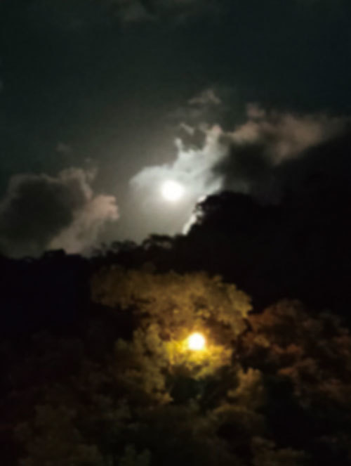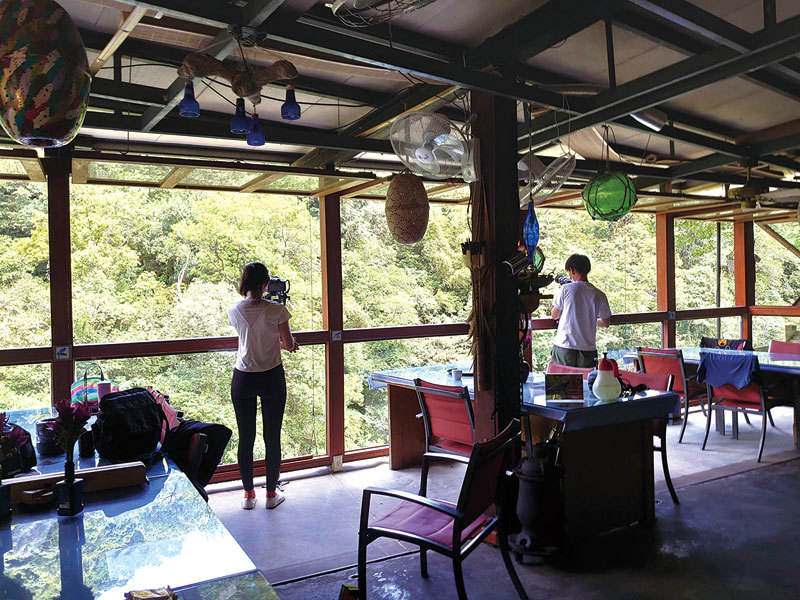 這裡常出沒的鷹類有七種,藍鵲是這裡的常客。猴子常跑進咖啡館裡與他追逐互丟東西,他這種喜歡與大自然為伍的生活也有孤寂的時候,因此他在溪流的對岸樹梢的制高點放了一盞大白燈,尺寸算好了與月圓時同樣大,這樣在沒有月亮的夜晚,就有一盞似月亮的燈,溫暖他的山居生活。游到溪的對岸再爬到一座很陡的山頂,來回要五個小時,好像也難不倒這位老先生。