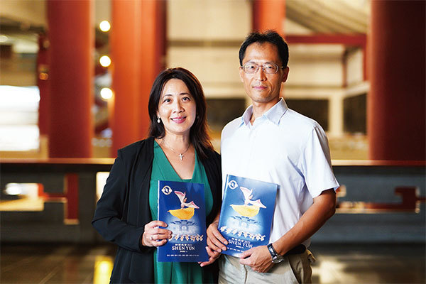 2022年7月9日晚,中華民國外交部發言人歐江安與先生台大機械系教授潘國隆一起觀賞神韻國際藝術團在台北市國父紀念館第四場演出。(攝影/龔安妮)