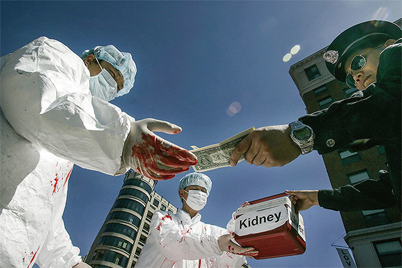 中共嗜血的本性,體現在其軍事和政治行動中。從六四天安門屠殺到活摘法輪功學員器官,正常的人類社會覺得匪夷所思的手段,中共都會無所不用其極的採納。圖為2006年4月19日,法輪功學員在華府演示中共活摘器官罪行。(Jim Watson / AFP)