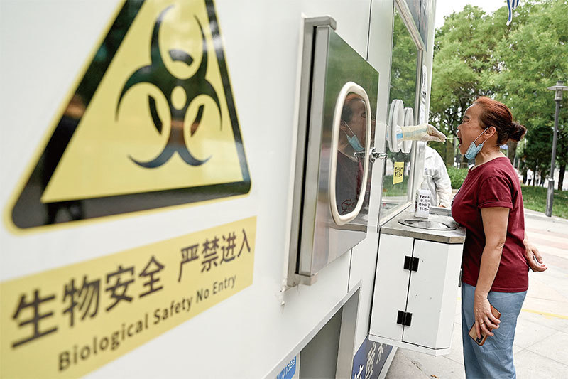 中共利用病毒向西方社會輸出恐懼、傳播恐懼。圖為2022年6月27日,北京一處核酸檢測站。(Noel Celis / AFP)