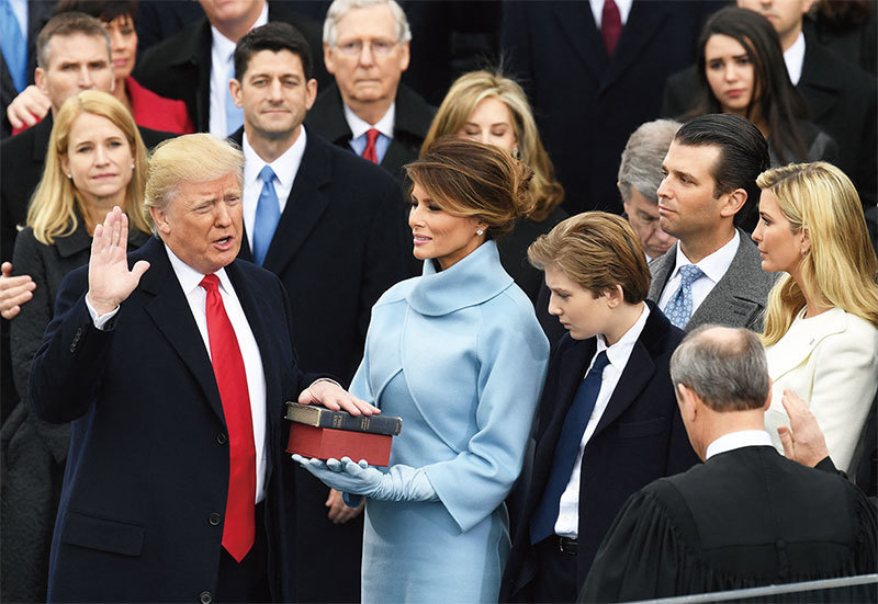 美國總統在就職時要將手放在《聖經》上宣誓,這就是文化和信仰對總統的制衡。圖為特朗普於2017 年1 月20 日在華盛頓特區的美國國會大廈宣誓就任總統。(Mark Ralston / AFP)