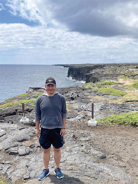 2021年6月《蘋果日報》被迫停運,傳媒人在夾縫中生存,說真話成為奢侈的事。石山不得不再次回美國。圖為石山在美國夏威夷火山岩。(石山提供)