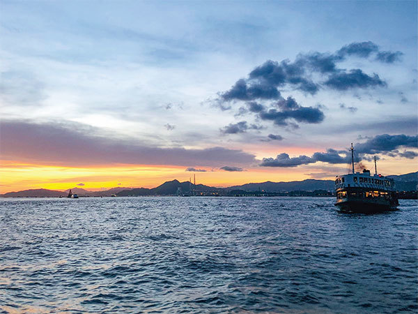 七一前後,石山在主持的自媒體節目中表示,香港帶給他的喜樂,這種對自由的感受,讓他後來執拗地認定香港就是他的故鄉。圖為香港的海與正在航行的船。(秋水/大紀元)