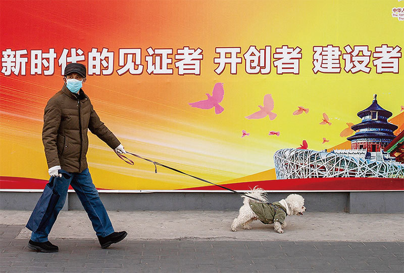 習近平的「新時代」不體現在壟斷權力方面,而是在經濟制度上,在如何掌握如何壟斷權力的方法上。圖為北京一條街道上的政治宣傳牆面。(Wang Zhao / AFP)
