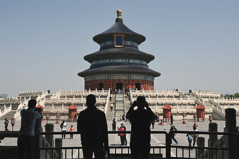 常聽到人將中共與古代封建相比。但古代的皇帝信天,中共的領導人信天嗎?古代的皇權之上還有更高的道德標準,中共有嗎?圖為2022 年5 月2 日北京天壇。(Noel Celis / AFP)