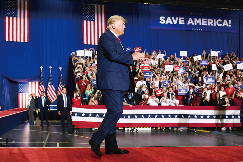 2022年10月1日,特朗普在密歇根州沃倫舉行的拯救美國集會上。(Emily Elconin/Getty Images)