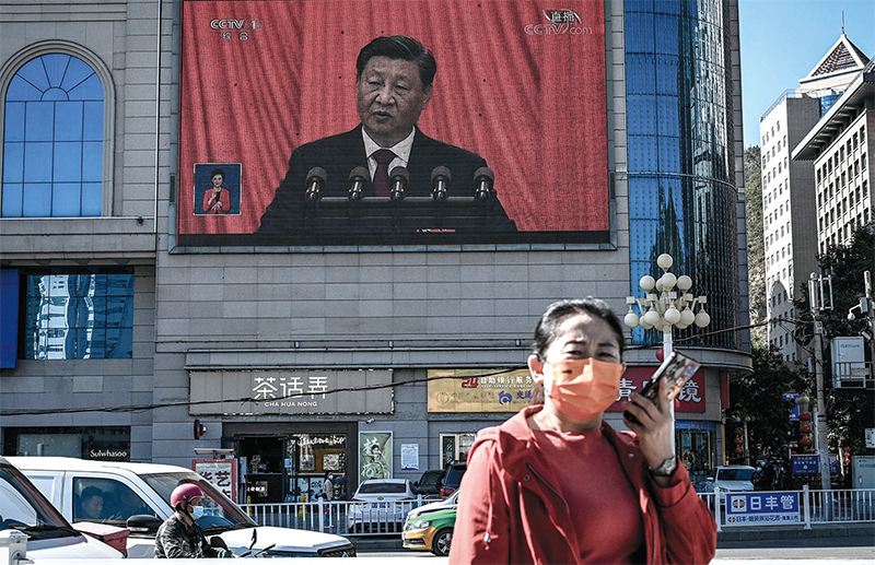 馮小剛曾說再來一次文革的可能性很大。很多網友說現在二十大後的某些政策和說法不就像文革再來嗎?圖為2022年10月16日,陝西延安街頭一個大屏幕播放中共二十大召開的新聞。(Jade Gao / AFP)