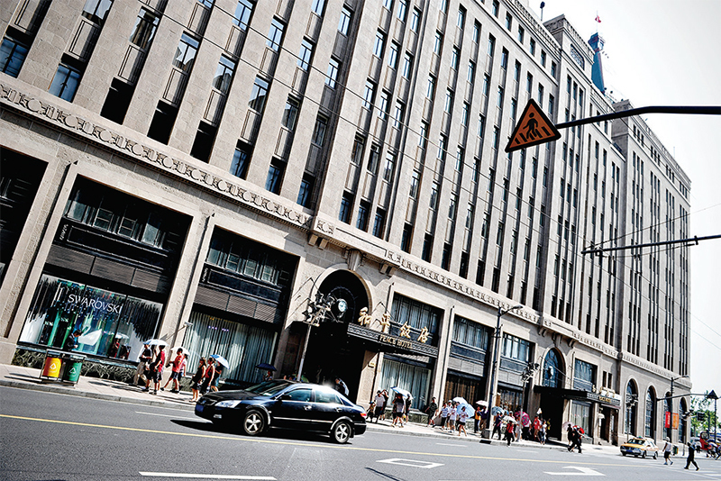 中共當局的「清零政策」嚇跑了越來越多的外國人,上海高級公寓酒店空置率過高,寶格麗已開始轉讓。圖為上海和平飯店門前。(Philippe Lopez / AFP)