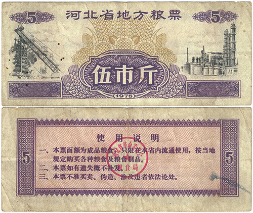 1975河北省地方糧票:伍市斤。(公有領域)