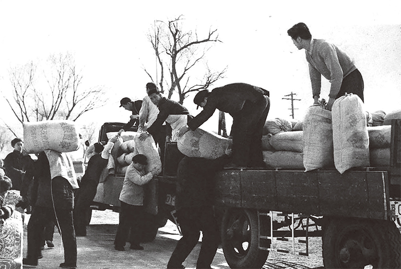 1965年,盧溝橋供銷合作社裝卸化肥。(公有領域)
