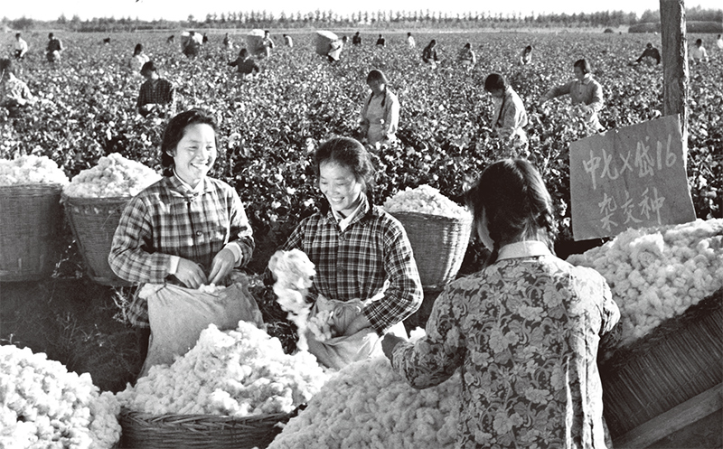 供銷社在收購上也有特權,每年一度的棉花棉籽收購都是供銷社創收的獨家生意。圖為1977年11月11日,河南省棉花田採收。(Xinhua / AFP)