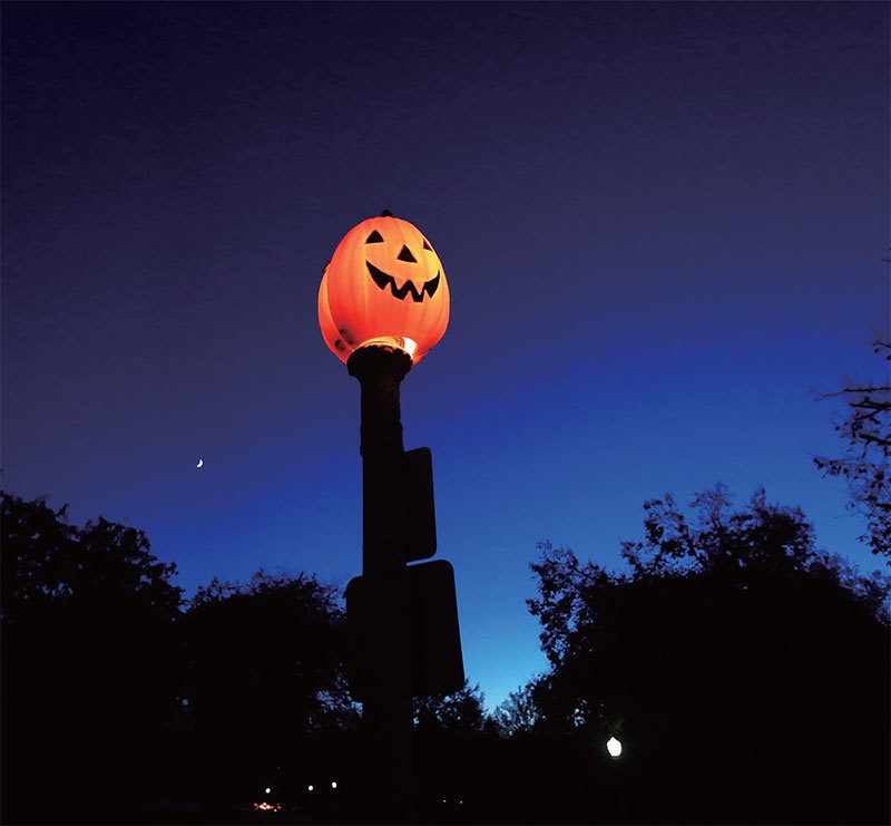 2022 年10 月29 日,加州洛杉磯漢考克公園附近一個萬聖節燈飾。(David Swanson / AFP)