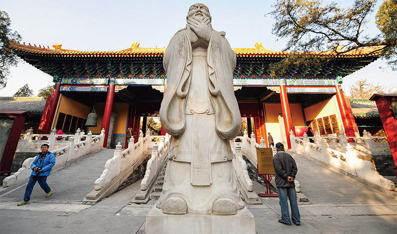 孔子作為一個肩負文化傳承大任的行者,不但自己要信天,更要教化百姓「敬鬼神而遠之」。(Frederic J. Brown / AFP)