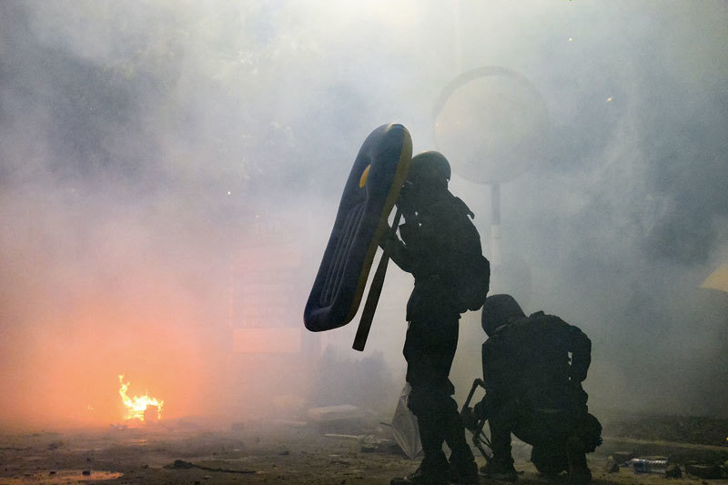 大紀元記者深入香港反送中抗爭前線採訪報導。圖為2019年11月12日中大衛戰。(宋碧龍/大紀元)