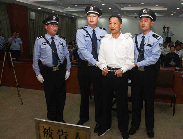 2013年9月22日,濟南市中級法院判處薄熙來無期徒刑,沒收個人全部財產。至此,薄熙來配合江澤民奪權的陰謀徹底破產。(Jinan Ipc / AFP)