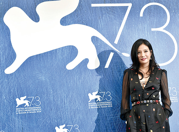 大陸女星趙薇2021年8月26日突然遭全面封殺,所有影視作品遭下架,並被傳列為「劣跡藝人」。圖為2016年8月31日,趙薇以評委會成員參加第73屆威尼斯電影節。(Tiziana Fabi / AFP)
