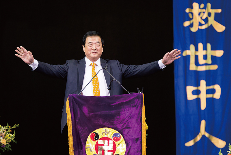 法輪功創始人李洪志先生2020年3月在文章中警示,瘟疫「是來淘汰邪黨分子的」,並諄諄告誡世人遠離中共,趨吉避凶。圖為2016年5月15日紐約法輪大法修煉心得交流會,李洪志先生親臨講法。(戴兵/大紀元)