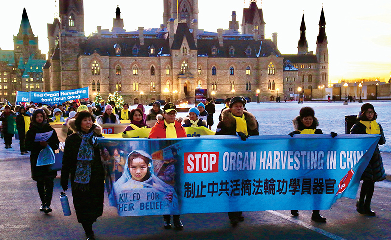 2022年12月14日,部分法輪功學員、維吾爾人和藏人在加拿大國會山前集會抗議中共活摘器官暴行。(任僑生/大紀元)